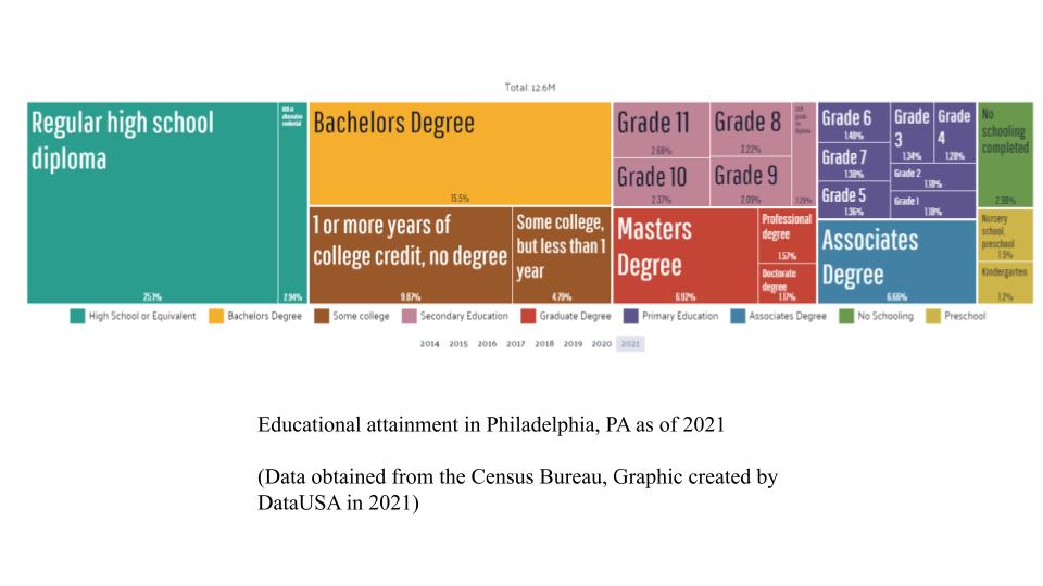The United States Census Bureau website notes that from the years 2018 to 2022, only about 33.6 percent of Philadelphians above the age of 25 obtained a Bachelor’s degree or higher. Making the decision of what to do to set up your future at 18-years-old is a tough one. Do you begin to work and save up money, or do you go to “second high school” in an attempt to potentially increase your salary when you do begin to work, or so that is the plan. Some people don’t actually have a choice, they are influenced by their parents on what to do, while others have ultimate freedom. But is the choice really that simple? It doesn’t appear so. I set out to explore different factors of why people choose to not attend college, and I found within my perspectives that it’s not due to wanting to avoid endless homework, it’s because of familial factors.